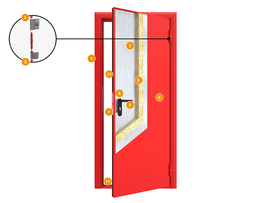 Противопожарные одностворчатые двери обладают пределом огнестойкости EI 60. Они способны сдерживать распространение огня в течение часа для обеспечения безопасных условий при эвакуации людей.