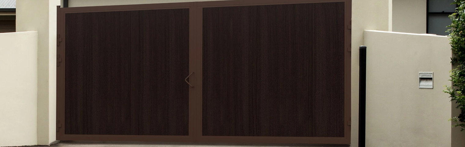 Распашные ворота стандартных размеров в алюминиевой раме с заполнением сэндвич-панелями sws